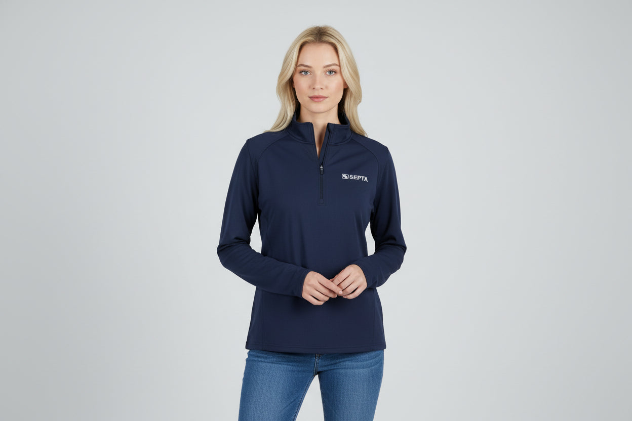 The SEPTA Athletic Zip combines performance and refinement for the modern commuter. Crafted from premium soft fabric, this versatile piece transitions seamlessly from your workout to your workday. The sleek zip design offers easy layering and temperature control, while the quality construction ensures lasting comfort and durability. Whether you're heading to the gym or the office, this essential piece elevates your athletic and professional wardrobe with understated elegance.