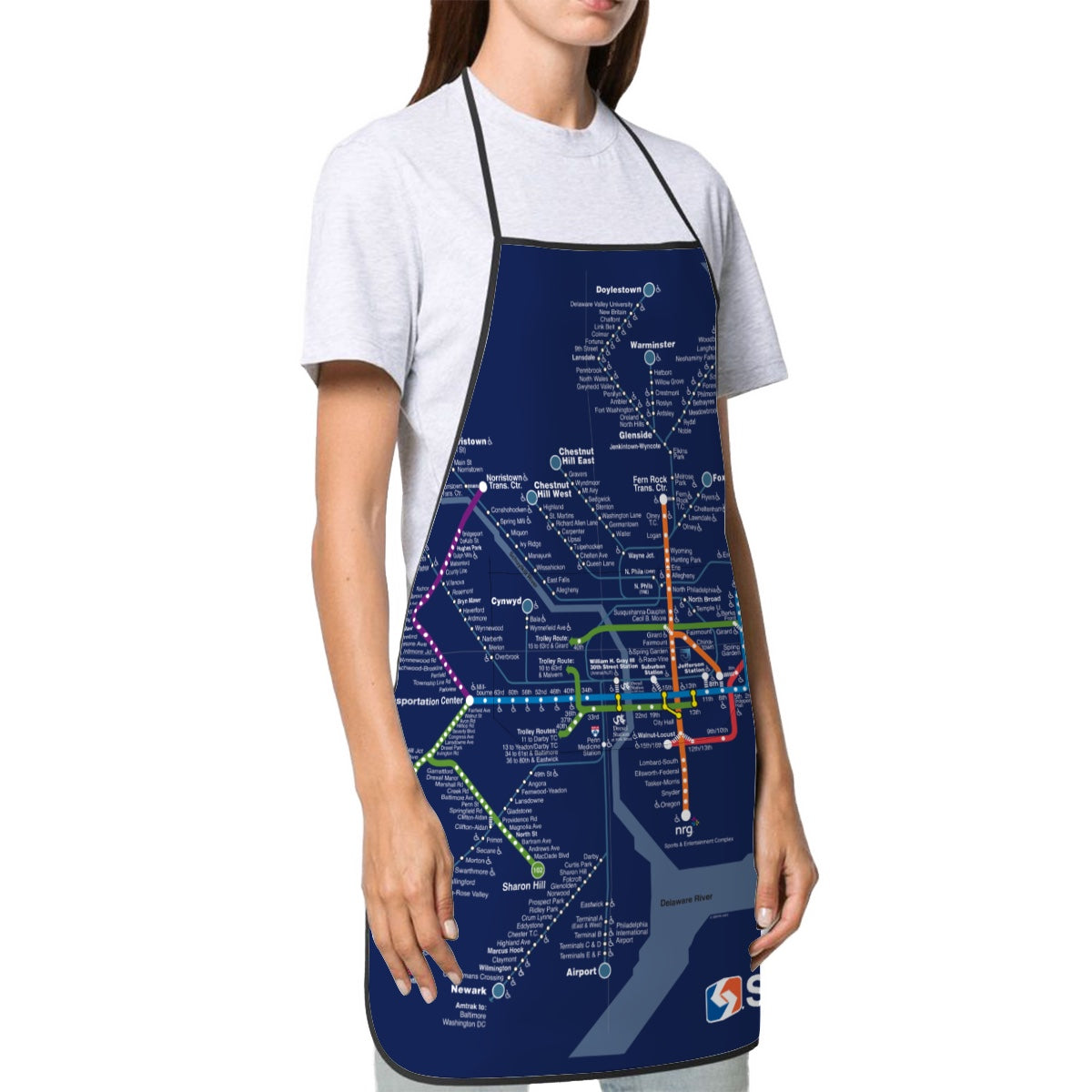 Wear your commute while you cook. This Rail Map Apron brings SEPTA's iconic transit lines straight to your kitchen, turning meal prep into a celebration of Philadelphia's classic transit system. Whether you're a daily rider or a transit enthusiast, this playful apron lets you cook with personality. Durable, easy to clean, and guaranteed to spark conversations at dinner parties—because the best meals come with a story about how you got there.