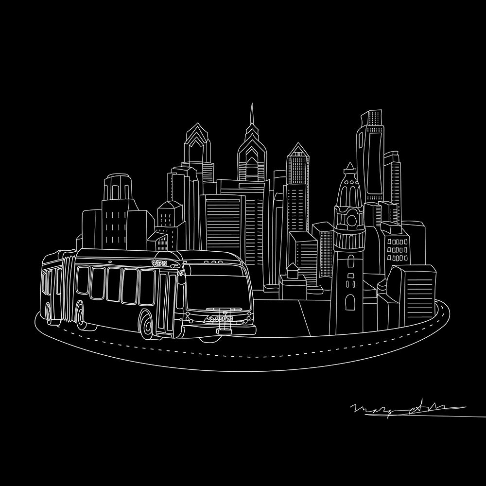 Showcasing an exclusive sketch of SEPTA's articulated bus framed by the iconic Philly skyline. This never-before-seen design combines classic artistry with a timeless look, making it a must-have for those who value both style and local pride. Stand out with a shirt that honors SEPTA's Philly heritage in a way no one else has captured.